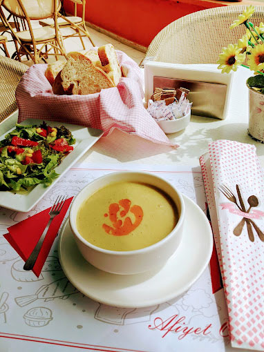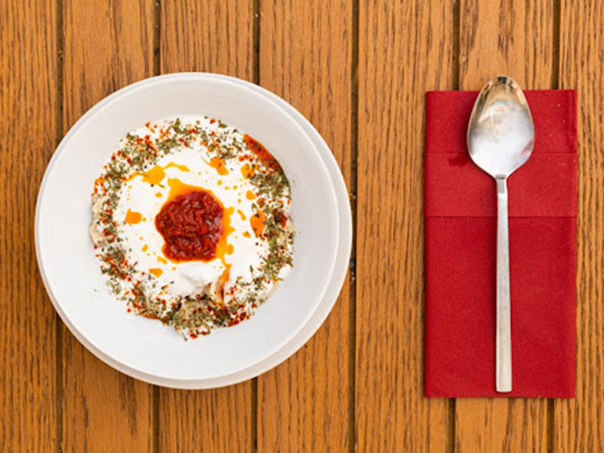 We chose it by reading Google reviews. When we saw it in the neighborhood, we hesitated a bit to enter, but later our minds changed a lot. We had lentil soup manti and stuffed peppers with cheese. The flavors were great. The prices are also reasonable in my opinion. You can dine outdoors in a quiet environment. As a tea drinker, I also liked their tea very much.